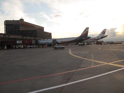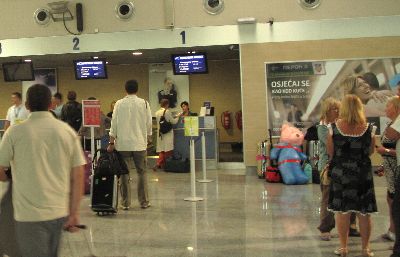 早い朝食後にホテルを出て空港へ向かったのですが、その空港が近い!あまりの近さに時間をもてあますほどです。 ところでこのポドゴリッツァの空港ですが...こう書いては失礼ですが、福島空港の半分もない(^_^ゞ贅沢しなければ、きっと空港ってこれでいいって見本なんだね。建物も二階部分ないし\(_ _;) ポドゴリッツァからベオグラードまでのチケットはユーゴスラビア航空JAT、本来搭乗の2時間前までに来いとか言われていましたが、この空港では30分前でも十分間に合いますね(^_^ゞ