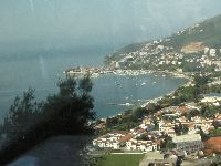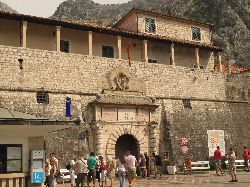 9月16日(木)快晴 ツェティニェから少し海方向に走ると突然視界が広がり、アドリア海が見えてきます。道は海の寸前で一気にブドヴァの街へ。かなり高い場所から街が一望できるので、旧市街の形がはっきりわかります。 ブドヴァから一路海沿いの道を北上して世界遺産の街コトルに向かうのですが...この道がすごい!この道が見えますか→?こんな道が連続して、そこを大型バスが通るんですよ(^_^ゞ コトルはコトル湾(ヨーロッパ最南端のフィヨルド)の最深部にあり、地形の特性上道路を作るのが大変なんだね。(ノルウェーなんかも一緒) そこからさらに海沿いを走って国境を越えます。