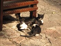 この時期でもアドリア海沿岸部は暑い暑い。太陽の当たっている所では30℃は軽く超えているでしょう。疲れたら日陰にある路上カフェで一服してください。意外と乾燥していて、日陰に入るととっても涼しいんですよ〜♪ |