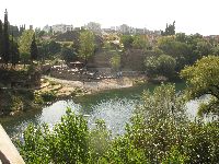9月18日(土)快晴 観光最終日、朝ホテルを出発、先日の旧首都ツェティニェを少しだけかすって首都ポドゴリッツァへ向かい半日観光です。 元々モンテネグロの面積は福島県とほぼ一緒なのですが、ポドゴリッツァの個人的印象は『会津若松市と同じくらい?』って感じ(^_^ゞ ただ新しい街だけあって歴史的なものは少ないものの、活気があって若い!建物も近代的なものが多く、現代のヨーロッパの街と言った感じ。(実際には11世紀から文明はあったらしい) 見所は物価の安いショップ類と、モンテネグロの台所的な市場かな。ただ沢山のジプシーが入っていて人種はごちゃ混ぜって感じ。また市場ではジプシーの子供たちが物乞いに歩いています。でも治安は悪くないようですので、ご安心を。