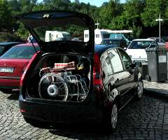 7月12日(日) この日はラッキーな一日でした。 宿を出てすぐに道を間違ったのですが、戻るのも癪に障るのでショートカットしてポーランドを目指しました。 するとすぐに、馬に乗った何かのイベントに出会い、それから気持ちいい湖の小さなリゾート地を経由と、本当に綺麗な道を走りました。 次に通ったのがBecovという谷あいの街です。 お城が綺麗だったので、何となく車を置いて散歩しに行って見ると、何とそこで結婚式をあげているではありませんか\(^o^)/ その後、タキシードとウエディングドレスを着た人形を車のボンネットに飾り、それを含めたお付きの車も白いリボンで飾り立て、谷あいの道をクラクションを鳴らしながら練り歩くのです。きっと思い出に残るんだろうなぁ。 |