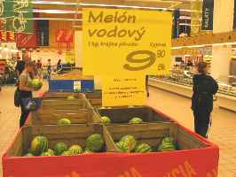 | なかったのでCD機探しに出なきゃならなかったんですけどね(^_^ゞ 街に出ると郊外型の巨大スーパーを発見、ここでお金を下ろすついでに中を見学すると、スイカとビールが9.9スロバキアコロナ(1コルナ3円ぐらい)です。物価が間違ってるぞ(^_^ゞ ちなみに宿はMartinの街の南、Bela Duliceという小さな村にありました。 |