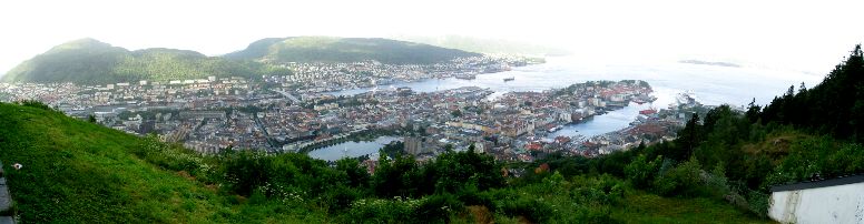 Bergenの周りは高速道路が走り、素直に街中に入るには標識が足りないかな?雨の中少し迷って中心の港に出ました。 Bergenの市内はなぜかかなりの箇所で道路工事を行っており、駅に行こうと思っても、一方通行などで思った通りに近づく事もできません。これだから都市部ってキライなんだよね。 やっと駅に到着し、今度は宿探しです。 Nさんの指定は「地球の歩き方」に載っているHostel Intermissionと言う安宿(布団もレンタルして二人で240クローナ(3840円))だったのですが、案の定Nさんが部屋を見た瞬間にNO!何せ大部屋に沢山の二段ベットが置いてあるだけでプライバシーも無いしね。 次に行った宿も「地球の歩き方」に載っているMarken Gjestehusと言う安宿だったのですが、やっぱり一杯。 でもそこで別の宿を紹介してくれました。 紹介されたのはSkandia Sommerpensjonatと言う、バス・トイレ共同のアパートのようなもので、シーツ類を借りて素泊まり650クローネ(約12,000円)、街中ですから当然駐車場はなく、街中をグルグル走った所に停められるからと地図をもらいました。 何はともあれ、駐車場に車を停めに行ったついでに、側にあった中華で食事をして、一日が終わりました。 |