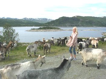 フィヨルドの山の多くは山頂部が平らになっていて湖が沢山あったりします。このR50もご多分に漏れず山を登ってしまうと平らで、何段にも湖が続き水力発電をしています。 こんなあまり人の来ない場所だから、例のあれが出没します。そう、動物さんたち。この時はヤギの群れに遭遇して、しばし運転を断念しました。写真の家族も一緒ね(^_^ゞ