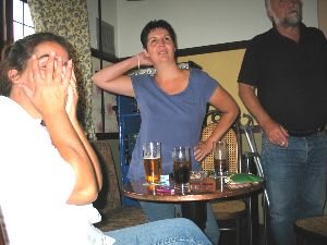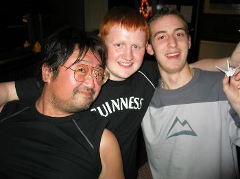この日はイギリス最終日。狙ったわけではないけれど、泊まったInnではこの日、アイリッシュバンドのライブがありました。いや〜乗りました(^^ 観客もノリノリ、カメラを向けるとポーズをとって「脱ごうか?」と言ってくれました\(^o^)/ぬがなっかたけど。 Nさんもノリノリ。食事は前日に「地元の料理が食いたい!」とわがまま言っておいたら、オヤジと奥様が本当の「フィッシュ&チップス(でかい!)」を用意してくれました。 娘さんからは「うちはPUBなのよ、こんなの出さないの!」とイヤミをを言われたのはご愛嬌(^^ 結局昨日ロンドン情報や電車の乗り方を教えてくれたカップル共々夜遅くまでドンチャン騒いでました\(^o^)/ ちなみにここでも折り紙教室を開いておごってもらっちゃった。結局一円も使わなかったよ〜ん。このままでいいのか?自分\(_ _;) |