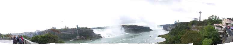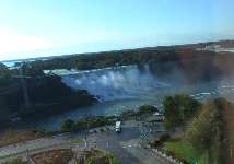 ちょっと趣の違った滝をご覧下さい。左が、夜ライトアップされたアメリカ滝。右が早朝の滝です。よく見ると、向こうに水平線が見えるのがわかります。でかいんですよね。 <9月28日(3日目)> |