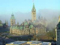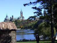 <9月29日(4日目)> 場所は変わって、首都「オタワ」です。ここが首都であることは、以外に知られていないんですよね。 川の向こうに見えるのは国会議事堂と国会図書館です。 そこで出会ったかわいいリス。野生です。でも、日本のハト並に人になれてやがるの(^^ 呼んだら近づいてきました。 |