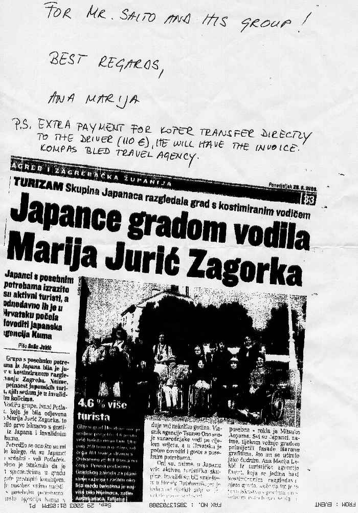 それが地元の新聞に掲載されました。その記事をご覧あれ(^^ ザグレブ泊 9月28日(日)晴れのち曇り |