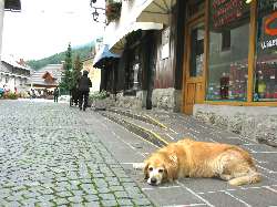 Goraの街。イタリア、オーストリアとの国境に位置し、世界一大きなジャンプ台と、観光客も犬ものんびり流れる時間がありました。 |