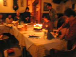 この日、偶然にも2人車椅子使用の参加者が誕生日でした。 地元のレストランで、やはり地元のケーキ屋さんで仕入れたバースデーケーキでお祝いです。レストランのスタッフも手伝ってくれたよ。よかったよかった(^^ ここBledでは、街頭のゴミ箱が雨蛙になっています。中々かわいいでしょ。これで綺麗な街が守られてる? ブレッド泊 |