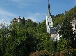ブレッド城のすぐ下にある15世紀の教会。毎日15分おきに時間を鐘で知らせてくれます。 山の上のお城と相まって、本当に美しいです。 スロヴェニアは小さいながら3000もの教会があります。湖の周りだけでも3箇所、無宗教のバスの運転手は「在りすぎだ」と言っていました(^_^ゞ |