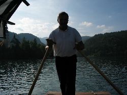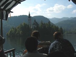 ブレッド湖には16人乗りのボートがあり、手漕ぎで湖の中島にある協会まで連れて行ってくれます。10人集まらないと出てくれないんだけどね(^_^ゞ |