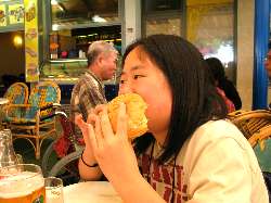この日の昼食に入った店で頼んだハンバーガーなんですが、この巨大さ、分かりますか(^_^ゞお札よりはるかに巨大。ナイフとフォークが付いて来るのですが、食べるのに一苦労しますよ(^_^ゞ |