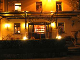 地元の料理を食べさせる有名な店のようで、この日生演奏が入る8時過ぎには超満員でした。 |