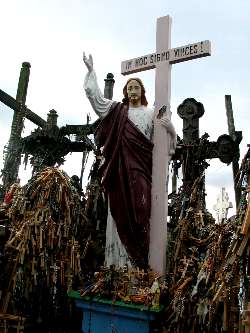 リトアニア ・ 十字架の丘 フタコブラクダのような丘の形をしている十字架の丘、縦に走る道と周りを幾重にも取り囲む道がありますが、車椅子での走行は無理です。ただ、すぐ側まで行けますので、その思いを感じ取る事は十分できるでしょう。 リトアニア ・ カウナス 旧市街は以外にコンパクトで、多少石 |