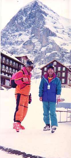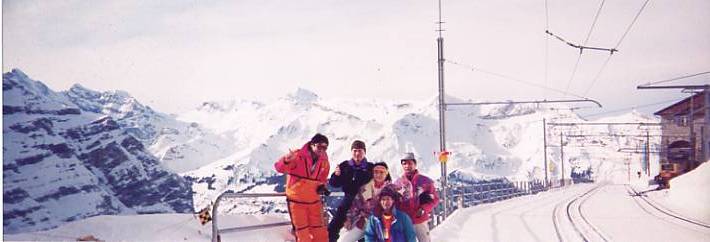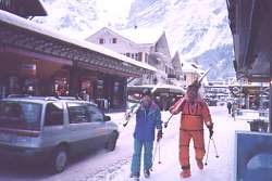 <<旅の詳細>> と き:191995-1年1月19日(木)〜25日(水) 5泊7日 初めての海外スキーは、ここグリンデルワルドでした。チューリッヒから車で2時間、世界中からスキー客が集まる一大リゾート地です。 コースは初心者から上級者までをカバーしますが、比較的なだらかな斜面が延々と続くことから、定年退職したお年寄りが目に付きます。80歳のおばぁちゃんが、本当に楽しそうにスキーをしている姿は、涙が出るぐらいうれしかったのを覚えています。(若者がいないと言うことではないですよ。) 中央のユングフラウヨッホは、登山電車によりアイガーの北壁の中を抜け、氷河の真っ只中まで行くことができます。ここがヨーロッパで一番標高の高い駅で、一度は行ってみる価値がありますよ。 ここには日本人のガイドも多く滞在しています。英語に不安な方も、日本人ガイドで楽々スキーが楽しめます。しかし、異国情緒を求める方にはちょっと物足りないかもしれませんね。 |