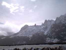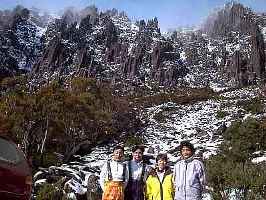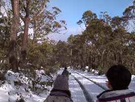 南半球の特徴で、山を登って行くと、途中から突然雪景色に変わるポイントがあります。 |