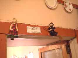 このパン屋さんには、黒い服を着てほうきに乗った魔女の人形がかけられていました。映画を見た人間が持ってきてくれたそうです。 |