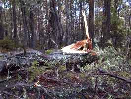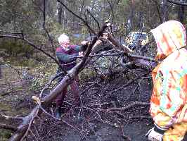 8月23日、朝起きるといい天気。いさんで車で出かけます。走ること45分。BenLomondの国立公園に入ってしばらく走ると...なんと、ユーカリの大木が風で折れて、道の真中にで〜んと横たわっているではありませんか(^^); |