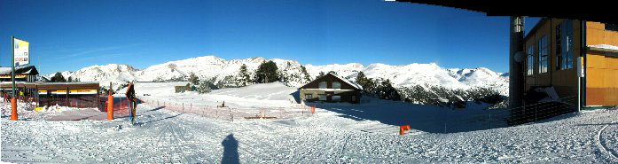 山の神様のお出迎え 1月16日(日)、17日(月)、アンドラは三週間続いた好天の最中でした。空はどこまでも晴れ渡り、そのほとんどを森林限界点の上にあるオープンスロープが占め、本当に気持ちのいいエリアです。そして、一本の長さが本当に長い!答えられないスキーヤーの聖地です。見てください、←このどこまでも広がるエリアと山の彼方まで続くリフトが、私達を非日常へ誘います。 |