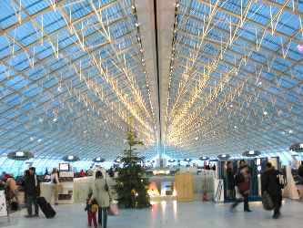 シャルルドゴール空港 しばらくぶりに訪れたこの空港、いつの間にかターミナルにFとGが増え6つに増殖していました。しかし流石パリ!綺麗でデザインが洗練されています。おまけに無料で誰にでも使える情報机があり、PC用の電源とLANポートが設置されています。使ってみたかった(^^ |