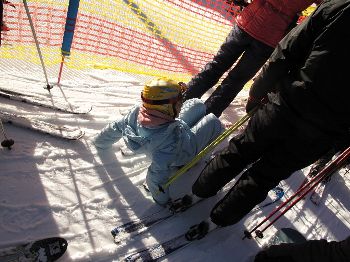 この時、上部は雪がありますが一番下の初心者コースは雪が少なく地肌が出ていました。雪のあるところから持って来るという考えはないようですね。ちなみに次の日はクローズされてた |