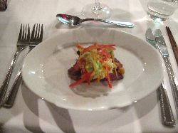 ホテルの夕食は、この日からはちゃんとしたコース料理(^^ メインなどは数種類の中から好きなものを選ぶタイプ。この日はサーモンとビーフからのチョイスでした。 しかし前回も思ったけど、ここの料理はおいしいです(^^ この日のメニューはこちら |