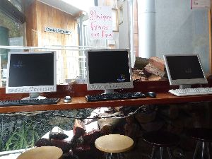 それと、ここはインターネットカフェもかねていました。 最近はそれなりに太いインターネット回線がビレッジにも来ていて、ホテルでは無料で無線LANを使用できました。E-mailはもちろん、ためしに日本のアニメを視聴して見たけど、十分満足いく結果でした。みなさんも、ノートPC持って出かけてきませんか(^o^)/~ |