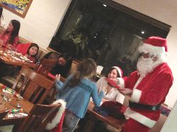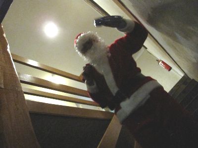 8月19日夜、ホテルに突然サンタさんが現れた 実はサンタさんは常連のお客さん。OZでは実際のクリスマスは真夏にあたり、雪のないクリスマスにになってしますので、こうして冬にクリスマスパーティーを開くんだそうです。 |