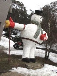 快晴のち曇り。今回は3勝1敗で、まずまずのスキーでした。 スキーを脱いで最後の昼食を取りにビレッジ内をお散歩しました。いろいろ不思議なものがあるもんですねぇ〜(^^ 下の写真はその一部です。 |