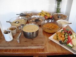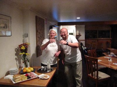 宿の帰ると、手作りのささやかな食事が用意されていました。それをつまんで、楽しかったイベントの話とワインで、FallsCreek最後の夜は更けていきました。 |