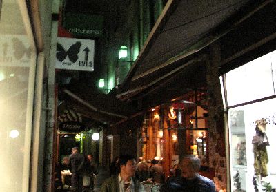 トラムを使って市内に戻り、夜の世界へ繰り出します。 食事は夕べ見つけておいた、メルボルンらしい?カフェへ。 6年前来た時には、随所に見られたメルボルンスタイルのカフェも、今では中華だけではなく日本食、ベトナムなどアジアン料理などのみせが多くなり、以前のメルボルンらしい店はめっきり少なくなっていました。 そんな中でも小さな路地でひっそりと、寄り添うように営業している三件のお店を夕べのうちに見つけておいたので、そこに食べに行くことに。 |