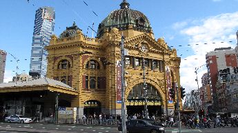 観光最終日はご夫婦と別れて自由行動にしました。 さて、次こそはとトラムに乗って向かったのがフリンダース・ストリート駅↓...だったのですが、6年前にはなかったウォーターフロント行きの枝線を発見 |