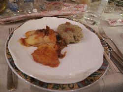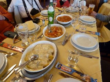 | ホテルへのタクシーのお迎えは15:30だけど、それより早くお迎えに来てくれたよ。 屋根のスペースに板を積んでGO!ここから約3時間、運ちゃん、よろしくお願いします<(_ _)>" ![]() ミラノはいい天気だったけど、山が見え始めたあたりから雲が出てきて雪かなぁ〜?と思っていたら標高が上がるとまた晴れた。 山に入っても何だ?雪が無いぞ?大丈夫かなぁ(・_・?)宿のあるChampolucに入ってやっと雪が見えてきて一安心最初の食事はこんな感じ→結構レベル高いぞ\(^o^)/ |