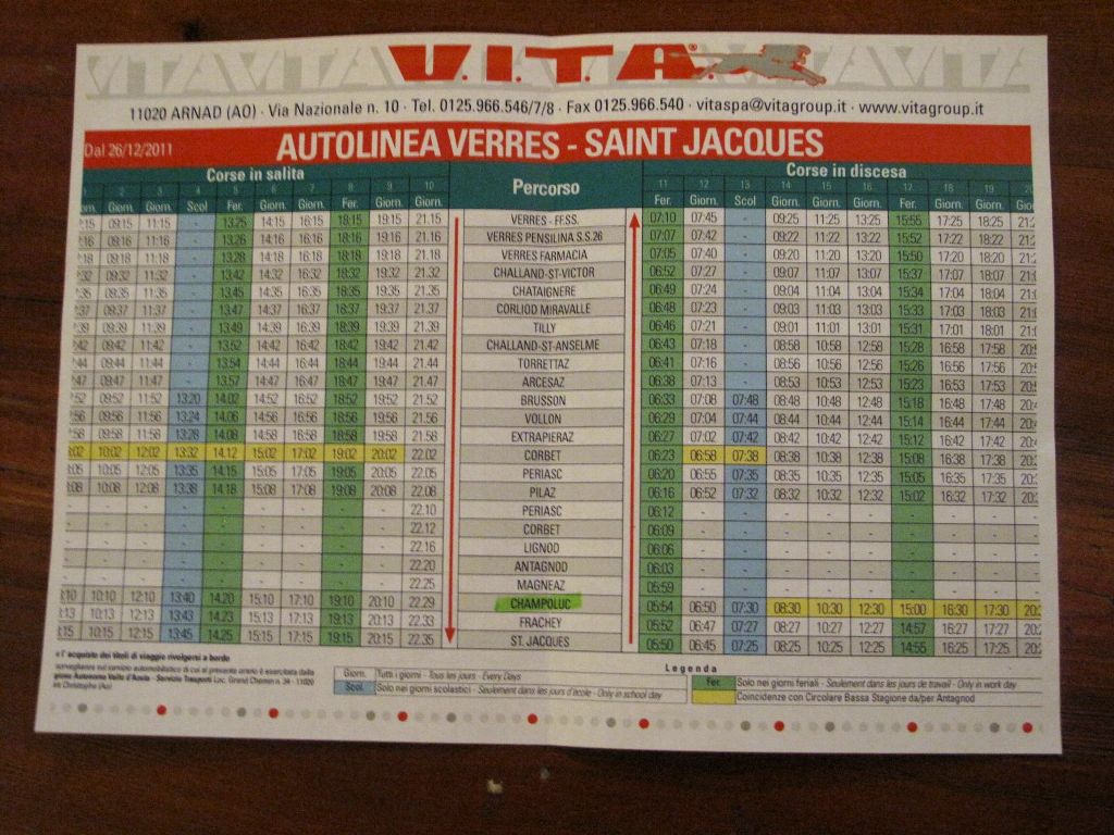 | <<旅の詳細>> と き:2012年1月13日(金)〜22日(日) 場 所:イタリア Valle d'Aosta州 エ リ ア:モンテローザスキーエリア 滞在場所:Champoluc(シャンポルック) ホ テ ル:ミラノ市内 ・UNA CENTURY★★★★ 1泊朝食付き :シャンポルック ・Hotel Castor★★★ 7泊朝夕食付き 航空会社:オーストリア航空 参加費用:128,000円(ツイン・トリプル) 航 空 券: 67,000円(税別) 参加人数:10人(リピーター4人、全員男!) 現地手配会社:ユーロ・スポーツ <<スケジュール>> |