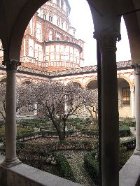 この日はミラノ自由観光!世界遺産の『最後の晩餐』拝観予約(完全予約制です)を10:30にしていたので、まずは地下鉄に乗って最後の晩餐のあるサンタマリア・デレグラツィエ教会の最寄り駅、CadornaF.N駅まで行きます。 地下鉄に乗ってしまえばたった5駅、10分ちょっとでCadornaF.N駅に着いてしまいます。 最後の晩餐の拝観は20分前に集合と予約をしたメールに書いてあったのできちんと20分前には行ったのですが...早すぎた(^_^ゞ結局↘この通路で時間まで待たされる。入場制限をしているし、予約の時間以外は入れてくれないので、多分5分前に行っても大丈夫!(^^;; 当然『最後の晩餐』は撮影禁止ですので、↑この写真で我慢してね(^_^ゞ 最後の晩餐見学から、今度はホテルに戻るように『スフォルツェスコ城』『ドゥオーモ』と歩いて散策します。がしかぁ〜しっ! |