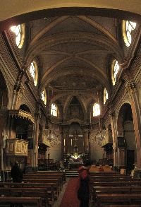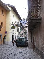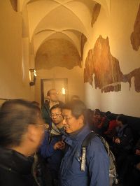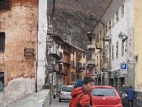 この日は天気が崩れるって話もあるし、毎日のロングコース滑走で疲れが見えるメンバーもいたしね。有志を募って、谷の入り口にあるVERRESにバスで一日遠足してきました〜♪ バスでVERRESに着くと、バス停には薬局とインフォメーション、そして公衆トイレまであります。これはトイレの少ないヨーロッパではラッキ〜♪ VERRESは高速を降りてすぐの街で、高台の岩場に大きな修道院?が目を引く街で、10世紀からの歴史と伝統のある街です。 まず旧市街を一通り散歩してから、旧市街の入り口にある古い教会に登ります。