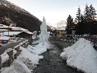1月15日(日)快晴 朝起きると快晴。放射冷却現象でキンと冷えた朝になりました。本当はここですぐ着替えて...と行きたい所ですが、ここはぐっと我慢して皆で街の様子を見に行きます。要はガス抜きね(^_^ゞ お散歩してわかった事は、ホテルはChampolucの街の中心にあるのですが、肝心のゴンドラ乗り場までは5〜5分歩かなくてはいけない。そしてそのゴンドラ乗り場付近も一つの街になっていて、そちらはスポーツショップやお土産屋さん、スーパー等が集中しています。 特にスポーツショップは充実しています...が、くまのヘルメットを買おうと思ったら頭が大きすぎて合うのがなかった(
