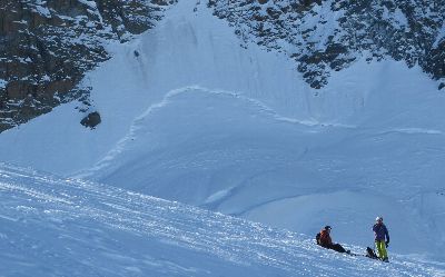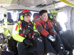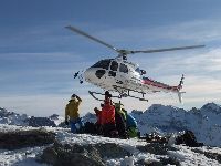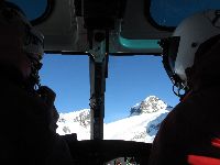 とりあえず参加者の足並みを見るのにゲレンデ内を滑走!まぁこちらは問題ないみたい。ただくまさんの借りた板が少し滑りが悪い。ワックスが合っていない様です。でもまぁさして気にもせずにヘリに乗りに行きました。まぁこれが後で大変な事になるのですが...\(_ _;) 場所はClle Bettaforca(2727m)で、降り場の裏に30mぐらい歩いた場所にある小高い岩の丘の上。そこからあちこちのコースに飛んでいくんですね、他のチームもいましたましたよ。 ヘリはマッターホルンの東側3500m近辺に到着、そこからトラバース(横移動)して滑走開始ポイントに向かうのですが、ここでアクシデント?発生!くまさんの借りた板が全く滑らない と言うことで、技術的にNGを出されたメンバーと一緒に救助ヘリで強制退去(T−T)/~~~~初めてのヘリスキーがこれだなんてねぇ(^_^ゞ ここで初めてわかるのですが、まずヘリに乗り合わせていた女性はお医者さんで、「どこを怪我した何があった」と聞いてきます。何も無いけどね(^_^ゞ でも悪いことばかりでは無かったです。 4時にはホテルに戻った我々とは裏腹に、スキーでスイス側に降りたチームが戻ってきたのは6時近く。話を聞くとスイス側に降りたのは2時ごろで、とても優雅に食事を取っている時間は無かったそうです。大変だったのね。ご苦労さん。 |