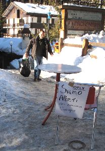 兎に角暖かい!まだまだ滑り足りないチームと途中で分かれて、この日もDu Gazeboに行ったよ〜ん♪何たってのどが渇いた。ビールビール〜♪
