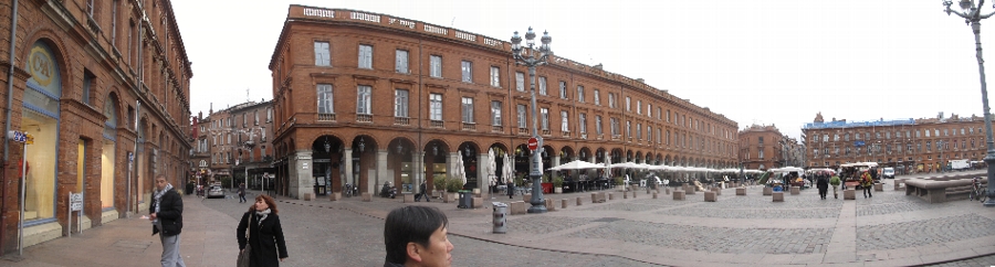 迷路のように曲がりくねった路地を歩いて、まず最初に向かったのは旧市街の中心で、市庁舎のある広〜いCapitole広場へ向かいます。ここの市庁舎は大きく威厳を感じるけど、時間も早いしそっちを見るのはパス(^_^ゞ