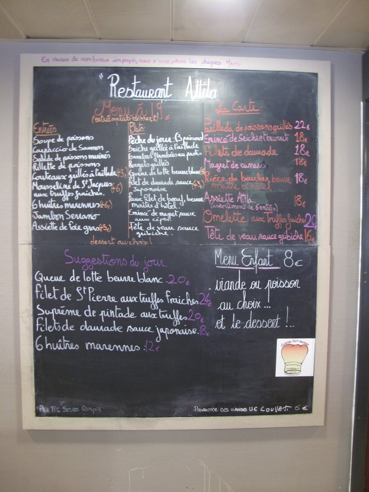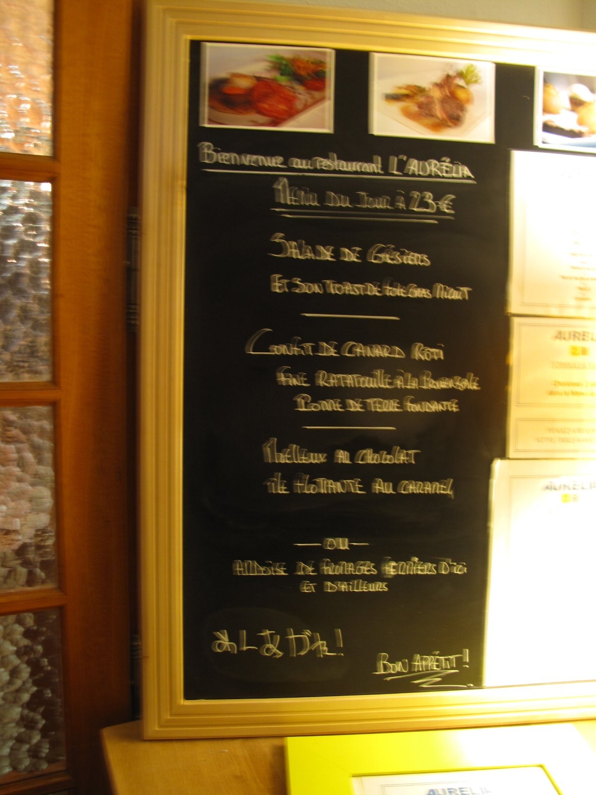 ![]() ![]() ![]() 今日はお上さんがバーの当番。この日も自家製フォアグラを使った ![]() ![]() ![]() この日のメニューはこちら 毎日手書きで書いている。外から食べに来る人も多い、人気のレストラン |