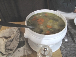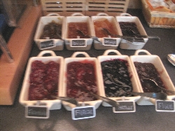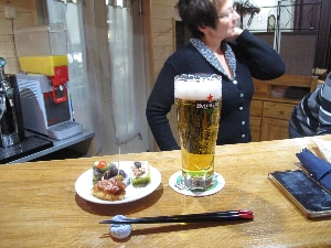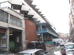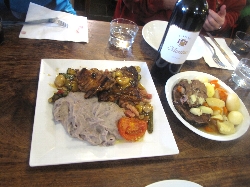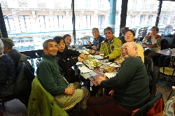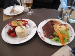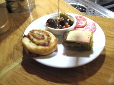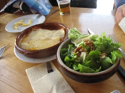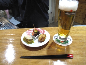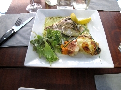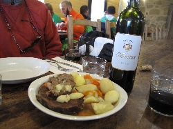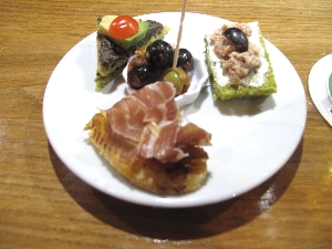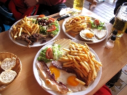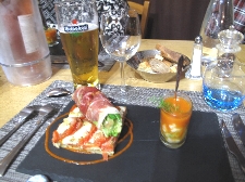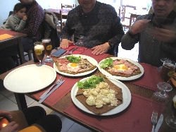 売っているのは果物、野菜、魚にタラの干物に肉、ソーセージ、チーズ、ワインと何でもござれ(^^ とりあえず自分たち用に柿とミカンとチーズ、ハムを購入して、それから市場の二階にあるレストラン街へ。新鮮な食材はすぐ下から仕入れられる環境で作る料理もなかなかなんだけどこれが観光客には知られていない穴場で、またそこがそそるんだよねぇ〜(^_^ゞ |