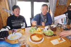 さて、少し疲れちゃったのとトイレ休憩で2000mのレストハウスに行って見ると、そこに別行動で滑っていたご夫婦発見!仲が良くてうらやましいよねぇ〜♪