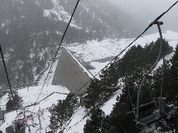 ちょっとダムを見学してから帰ろうとしたら、雪が強くなってきてガスまでかかってきた。オープンスロープで陰影の無い斜面はが何も見えない。滑っては楽しいけど、こういう時困るんだよね(T_T) |