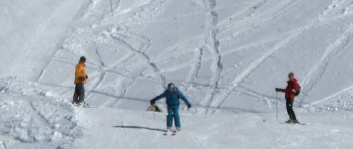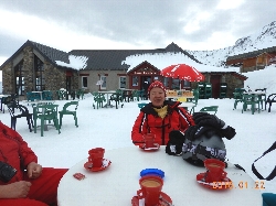 一頻りそのままオープンスロープを滑った後、今度はSt.Lary1900のベースに向かって下りていきます。今度はまだ食事も休憩もしていないこのエリアで昼食ね(^_^ゞ
