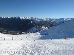 ゲレンデに行ってみると昨晩雪が降ったみたいで結構いい感じだぞ? 初日だからね、この日は軽く滑って終わります。再度SAINT-LARY1700エリアに戻り、ゴンドラで山を降りてくると、全く雪が無いんだよね(^_^ゞ明日からに期待しましょ! |