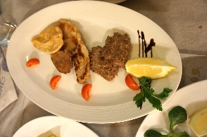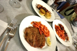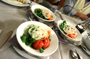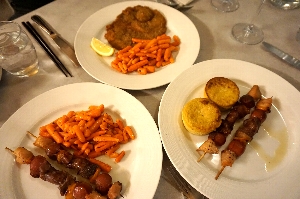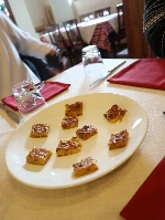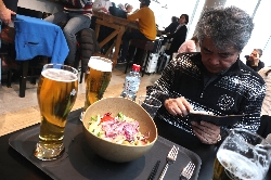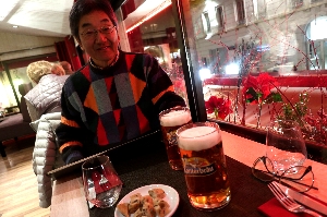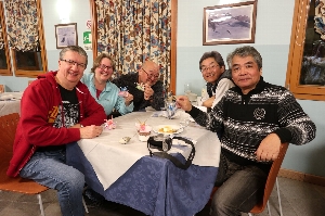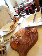 Iclesと言うレ、住宅街のストランに行ってみました。お客は私たちだけで、最初はえ"っ?って感じだったけど、色々サービスしてもらえました。特におつまみが充実していて、軽いものからサラミ、そして手の込んだチーズ料理まで、美味しかった(^^v 最後の晩餐は、レストランでよく見かけるご夫妻と、近くのアパートに滞在している?カップルと仲良くなって、大折り紙大会と写真大会で幕を閉じました(^_^)/〜 |