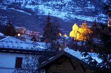 1月28日(日)快晴 朝起きると快晴!だからスキー...はぐっと我慢して、まずは一週間お世話になるチェザーナの街を散策します。実は初日から滑るぞーって感じでガンガン行くと、結構事故が多かったんだよね。だからガス抜き(街歩き)をしてから滑るようにしてるんだけど、そしたら事故が無くなった(^^ 今回もコンパクトなこの街をお散歩して廻ります。 まずはホテルから200mほど離れた街のインフォメーションに行きます。街の地図をもらい、スーパーの場所、近隣の街に行くバスの時刻とバス停の場所などの情報を入手してから、街の中心の教会に挨拶に行きました。一週間しか居ないけど、よろしくお願いしますね。 街の中心はローマ通りで、一本の坂道。川を挟んで西側が商店街、東側が教会と住宅街って感じ。通り沿いの建物は古く歴史を感じます。落ち着いていい街です。 |