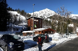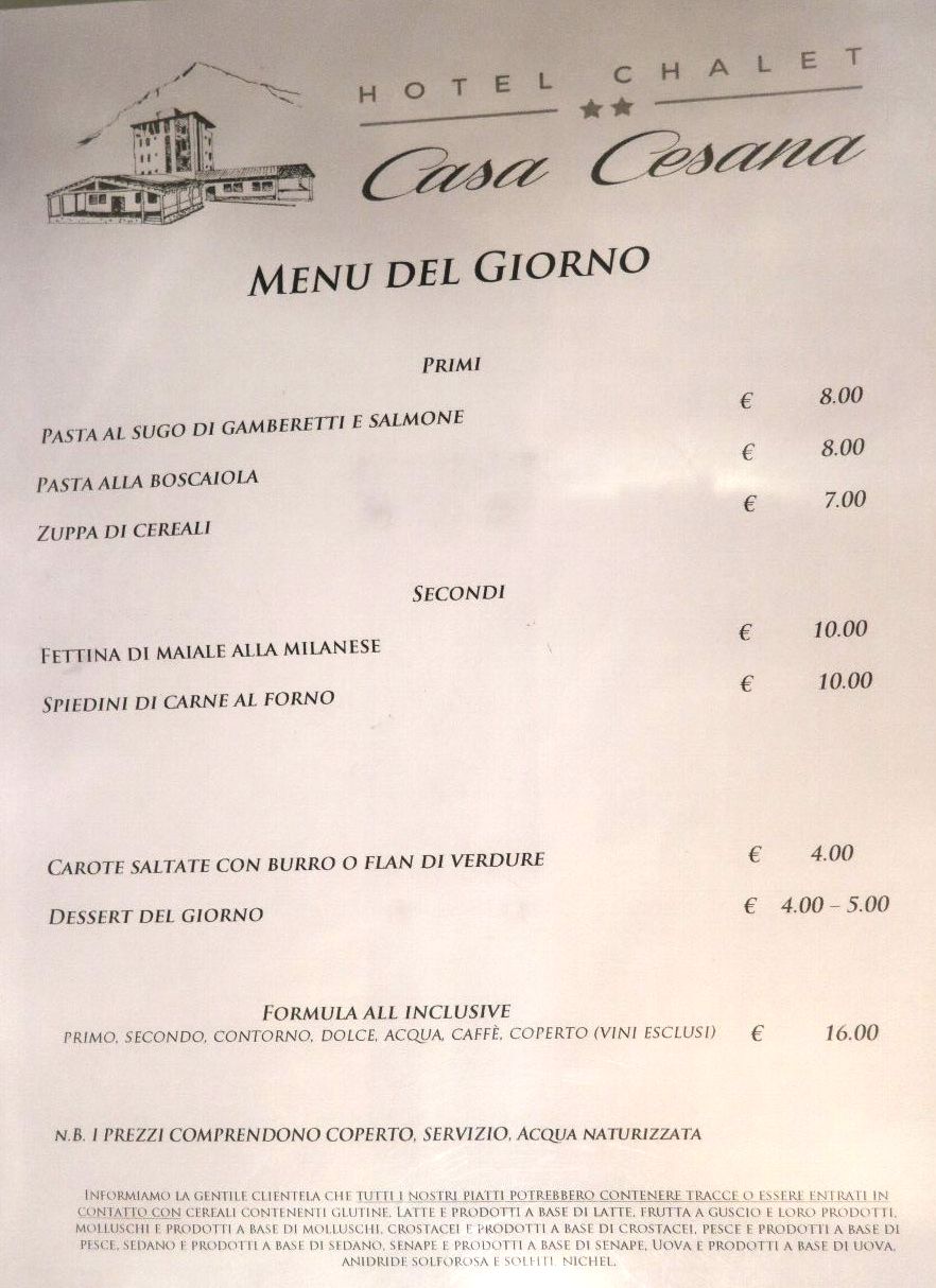 2月2日(金) 晴れ 滑走最終日!板や靴も乾かさなければならないし、お土産も買わなければいけない。この日は午前中だけの滑走の予定で、くまさんのリクエストでフランスのLes Anges 2455mに滑りに行きました。雪もいいしね。 ちょっとだけ早く出発して、いつものようにホテルから川沿いに200mほど歩いてゴンドラ&リフト乗り場に向かいます。この川沿いはオートキャンプ場になっていて、何台かキャンピングカーが停まっているのでキャンパーがいるんだね。 そしてClaviereに向かってリフトを乗り継ぎ、空いているコースを飛ばして行きます。 最後に国境を越え、フランス側の最初のリフト82に乗ろうとしたら...トラブル発生!! 何と三人とも乗り場でブザーが鳴ってゲートをくぐれない?! 係員が来てくれてチケットを確認、そしたら何とフランス側は1日しか滑れないんだと! 後でわかったことだけどフランス側は3日券で1日滑れるシステムで、3日ずつ分けて購入しないと二回フランスは滑れないということらしい\(_ _;) 結局Claviereエリアを滑って、今回のスキーは全部終わりました。 ホテルに戻ってお昼にします!狙いは街の「Pig」と言う( ̄(││) ̄)のステーキ屋さん。600gステーキを三人でシェアしようとしたのですが...何と臨時休業だった。。 |